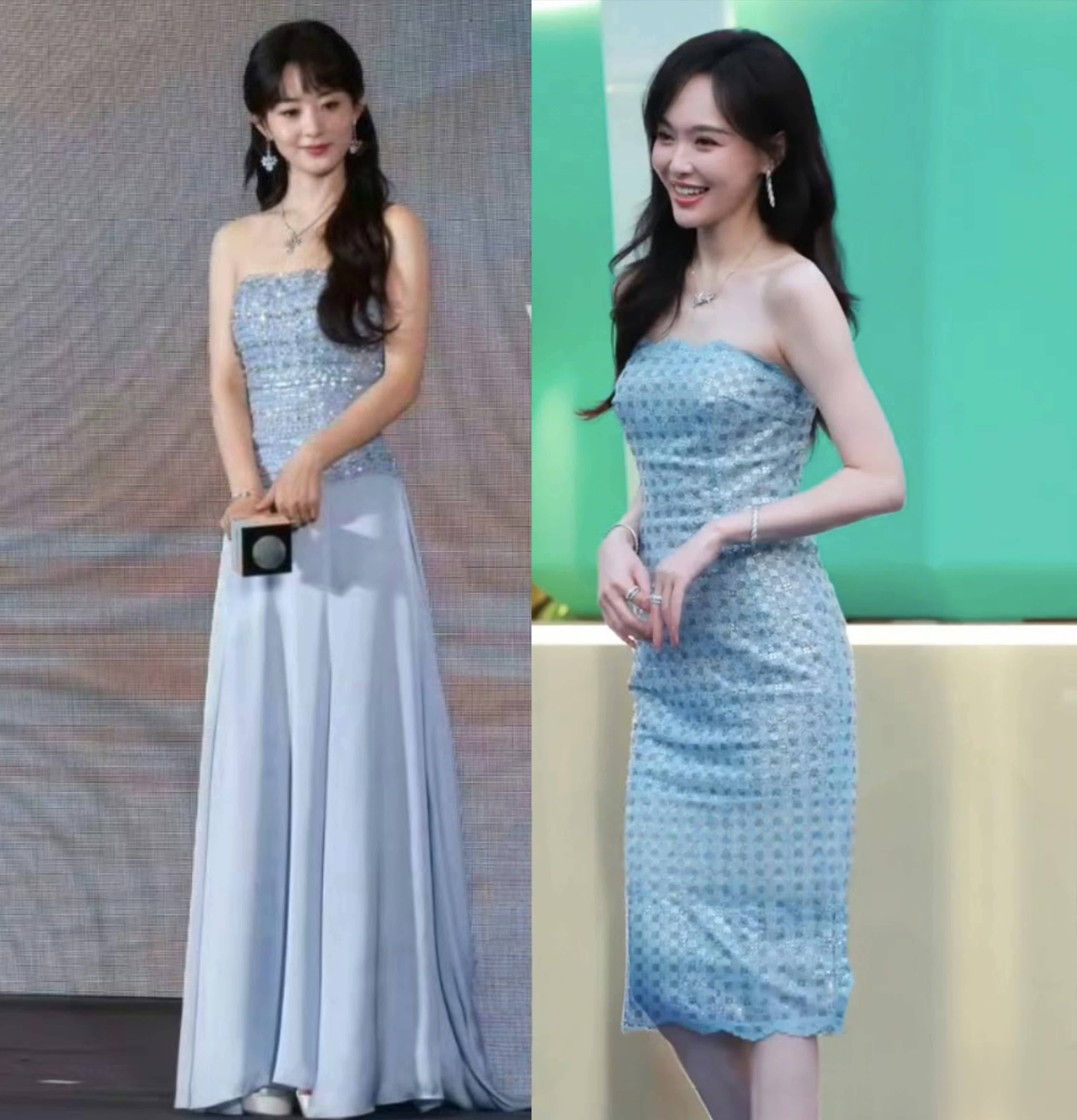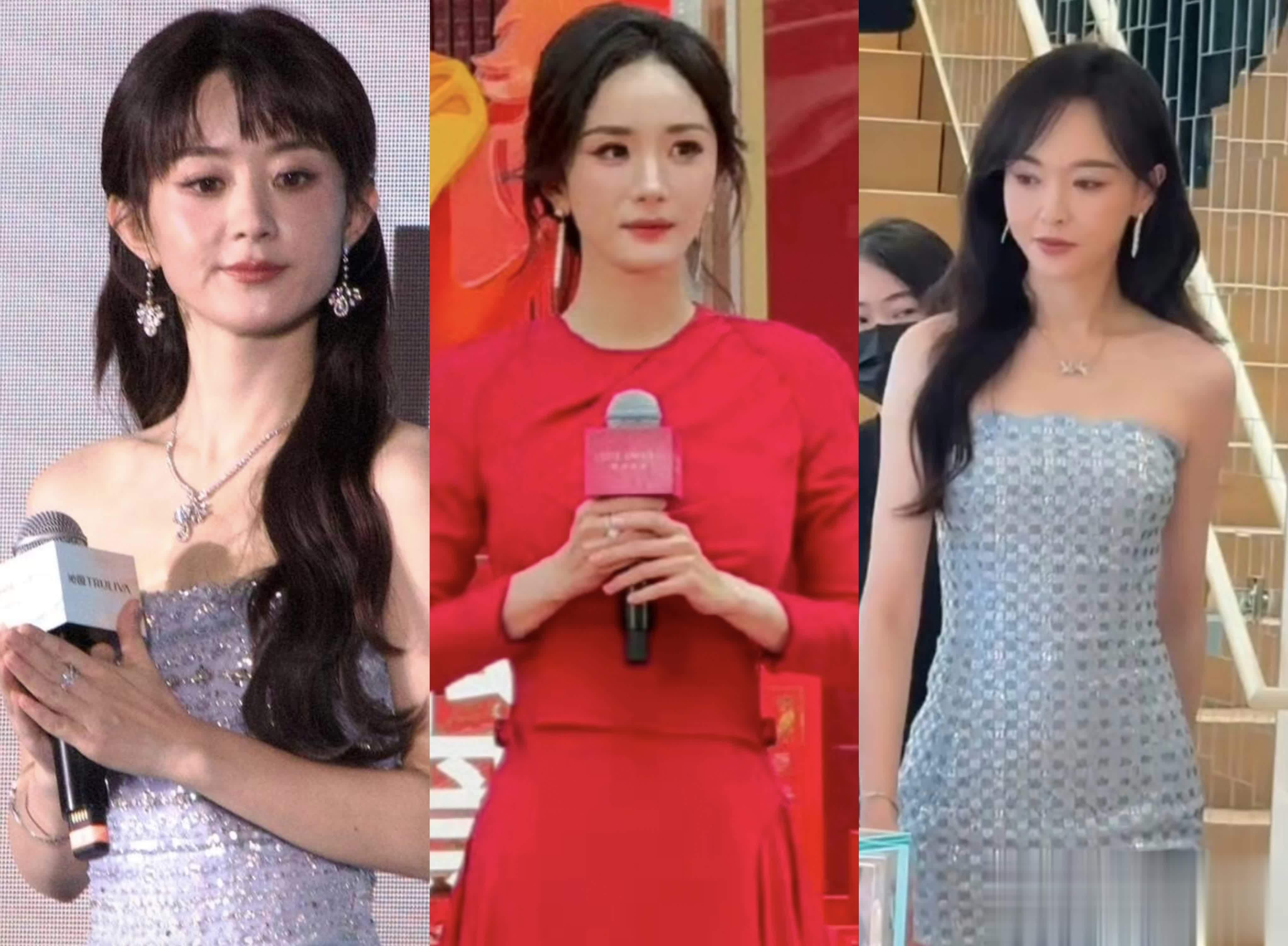 尽管跟唐嫣的色系和立场差未几,却穿出了充足不同的两种立场。