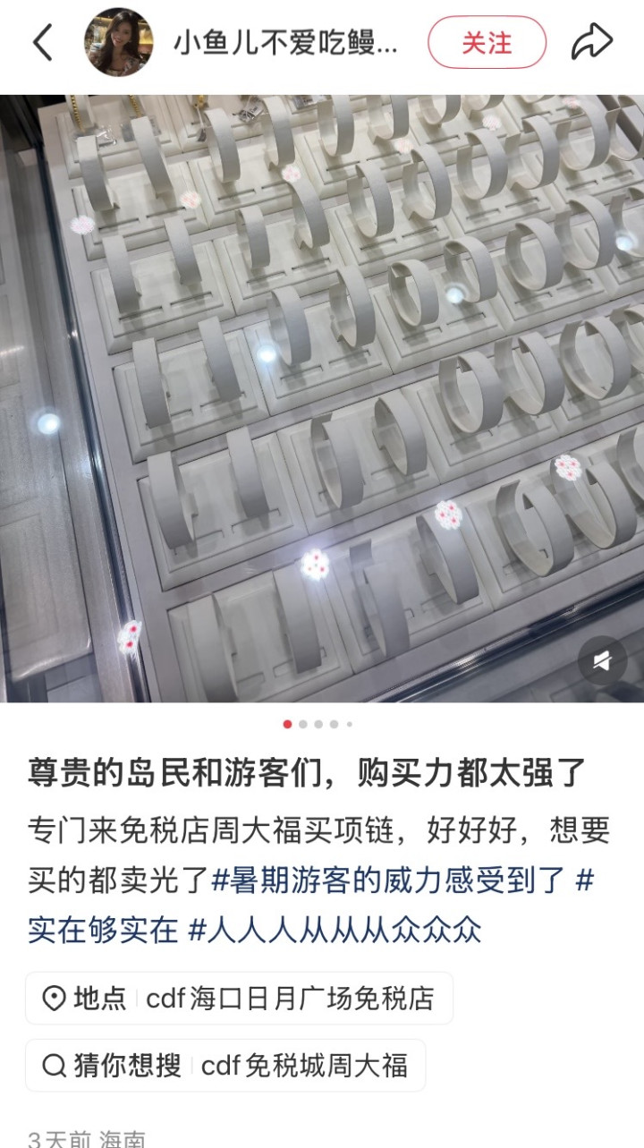 比起一些并不进免税店的浪掷牌,如路易威登、迪奥等,梵克雅宝的价差上风显著,也因此在外交平台上被戏称为“海南特产”。