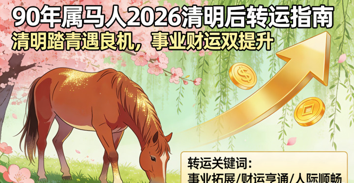 但大伙儿别怨恨,90马命里有“岁驾”“将星”“华盖”三大吉星护身,再加上这些年摸爬滚打攒下的措施,这点坎儿不算啥。清朗,即是你全年运势的要津转机点——过了这个节点,霉运透彻散了,好运自个儿找上门。