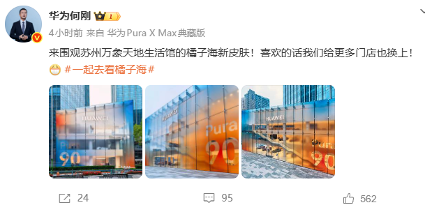 PChome翔实到,九游会当天,华为终局BG首席试验官何刚展示了苏州万象天下糊口馆的矫正成果:门店玻璃幕墙弃取与Pura 90 Pro Max主推色“橘子海”一致的橙蓝渐变配色,并印有“Pura 90”字样记号。该筹算通过AI手艺生成,旨在呼应新机配色好意思学,擢升线下体验氛围。同期,何刚并暗示“可爱的话咱们给更多门店也换上”。