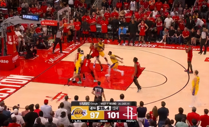 第四节临了25秒,火箭跳动6分,还持有球权——