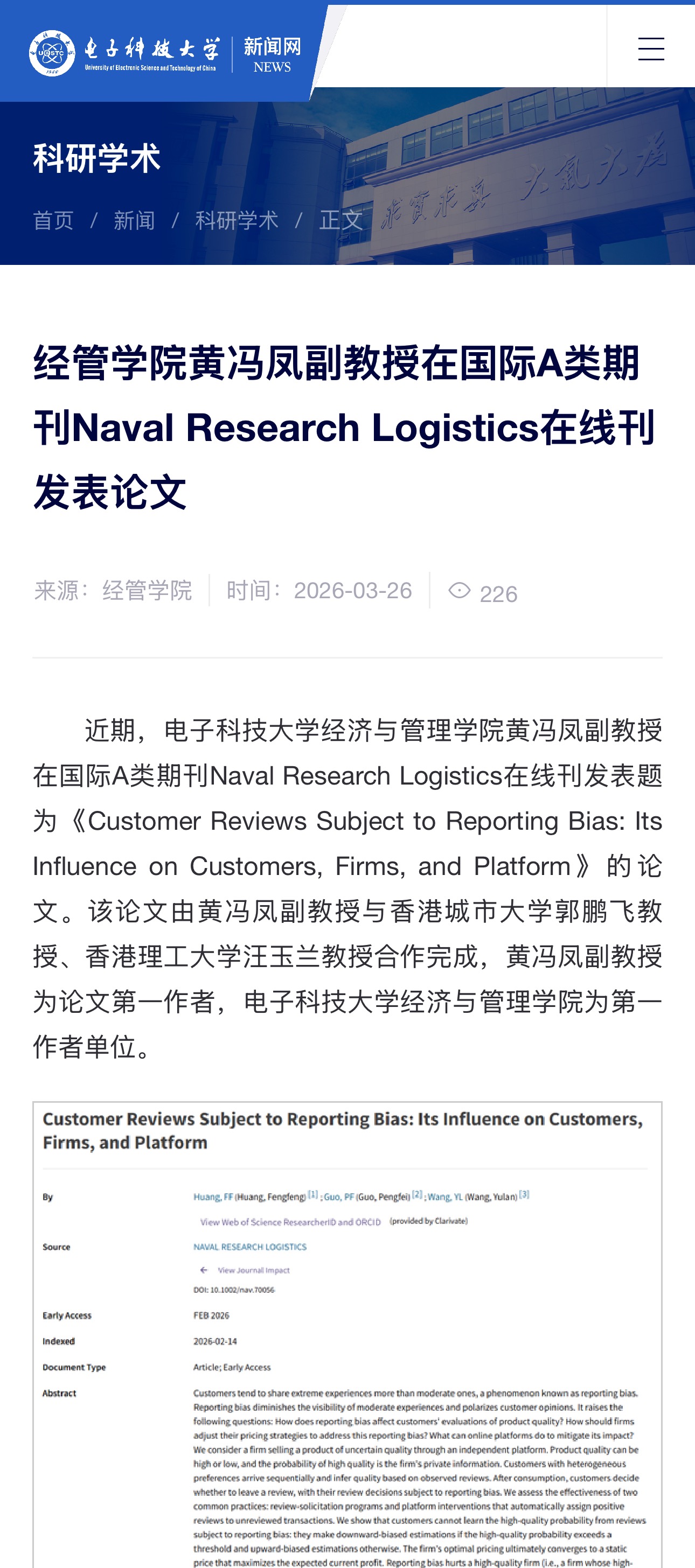 4月4日,赶巧明朗小长假,封面新闻记者专访了该论文的第一作家,电子科技大学经济与经管学院黄冯凤副素养,为您解开“指摘区的巧妙”。
