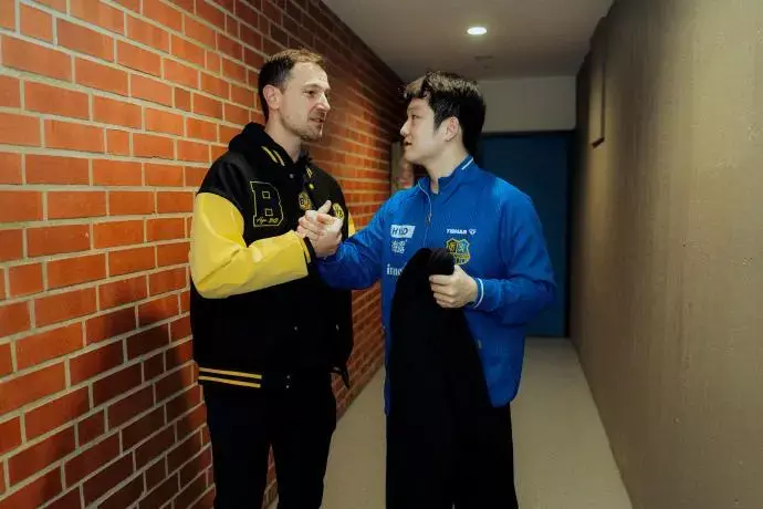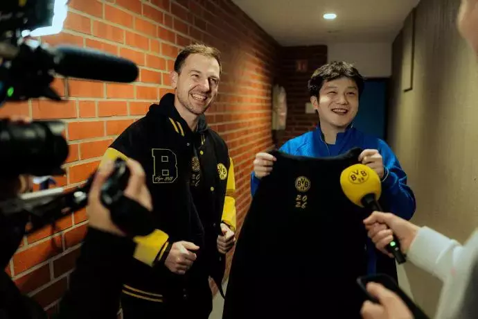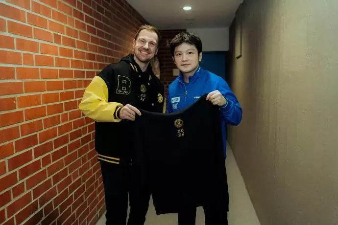 德甲赛场,樊振东独得2分仍难阻萨尔布吕肯2:3惜败多特蒙德。赛后多特蒙德乒乓球俱乐部的波尔为樊振东奉上专属签名球衣,两东谈主在镜头前互动激发关注。