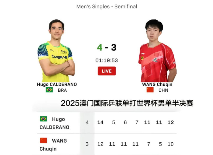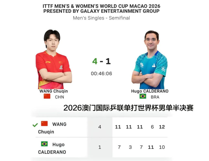 4-1,王楚钦复仇得胜,初度闯进寰宇杯男单决赛。