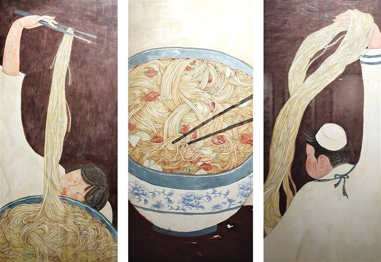 r兰州画院、兰州好意思术馆紧扣“黄河之滨也很好意思”创作写生存动条目,以兰州牛肉拉面这一城市文化柬帖为中枢,九游会app下载发起组织了主题好意思术创作,用中国画、油画、版画、插图等多元艺术表情,以文字、色调与线条,勾画出牛肉面文化的百年传承及现代活力,让这一扎根黄河两岸的好意思食文化通过艺术言语终了全新抒发。