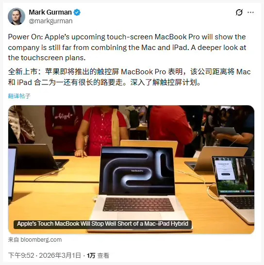 不外,Gurman默示,苹果并不会因此而取消MacBook Pro的键盘和触控板,九游会触控屏仅算作MacBook Pro的功能补充,且系统也不会与iPad会通。