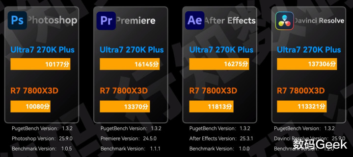 一句话追想:若是你除了打游戏,还有任何内容创作或重度多任务需求,那7800X3D根底不配和270K Plus放在一谈比。